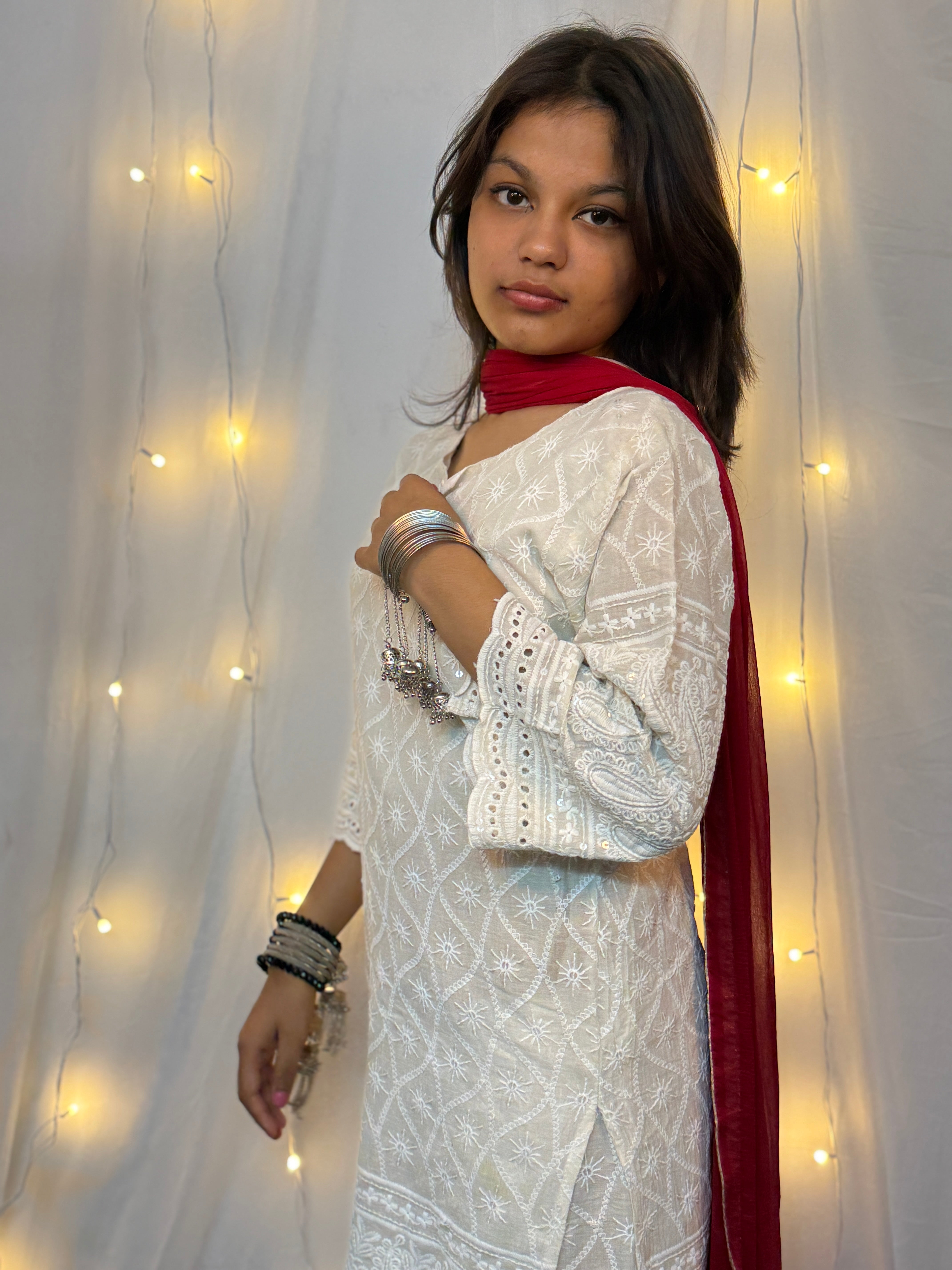 • Elegant white chikankari embroidery