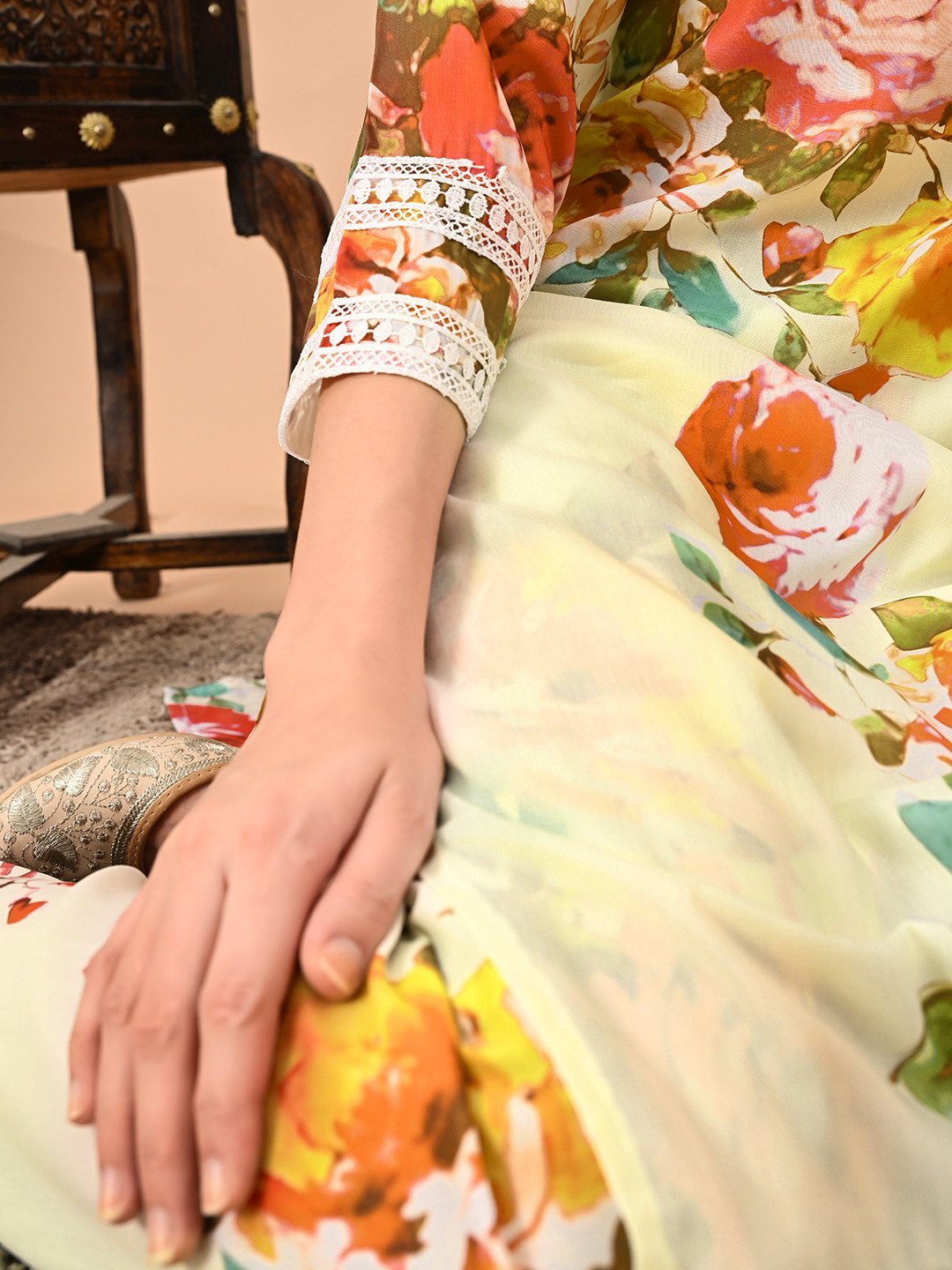 Floral Coord Set with Crochet Lacework