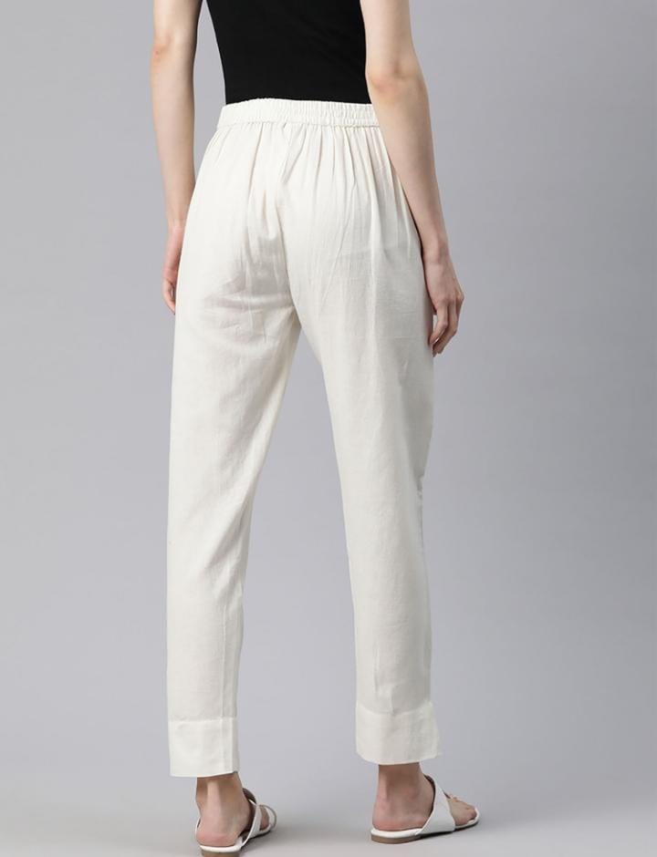 White Cotton Pants with adjustable waist belt. They work the best with kurtis.Crafted from soft, breathable cotton, they provide all-day comfort and effortless elegance. The clean white shade makes them versatile for office wear, casual outings, travel, or pairing with kurtis and tops—perfect for Dubai’s warm and modern lifestyle.